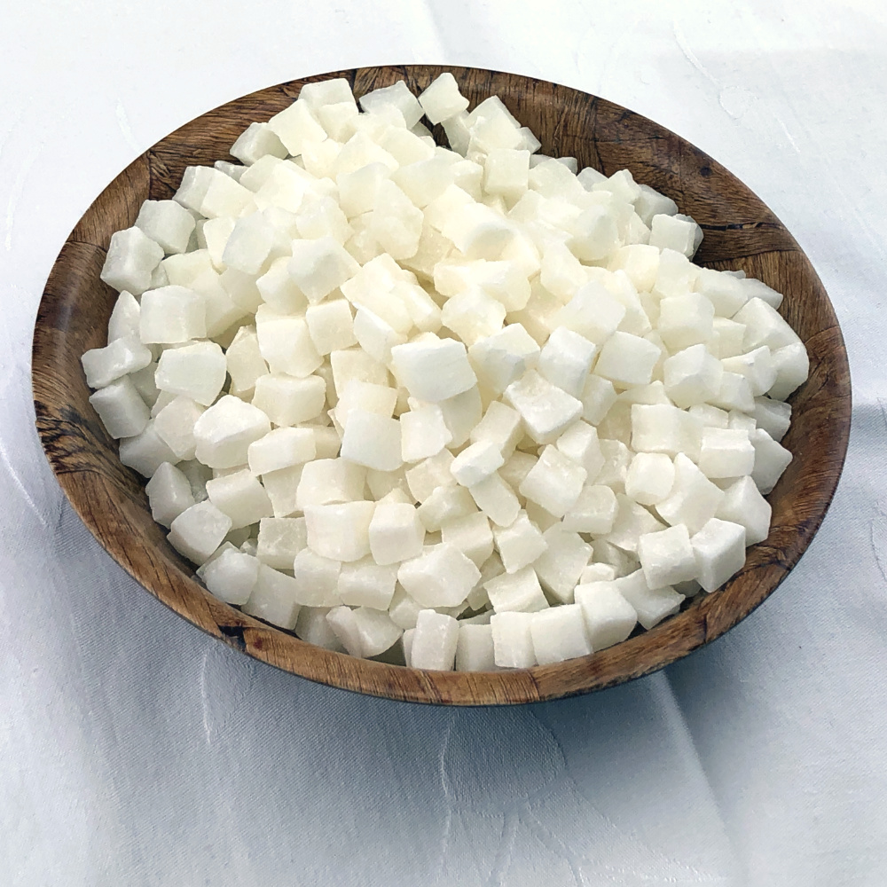Composition : Cubes de Noix de Coco entière déshydraté (8-10 mm), Sucre, Acidifiant (E-330), Conservateur (E-220).